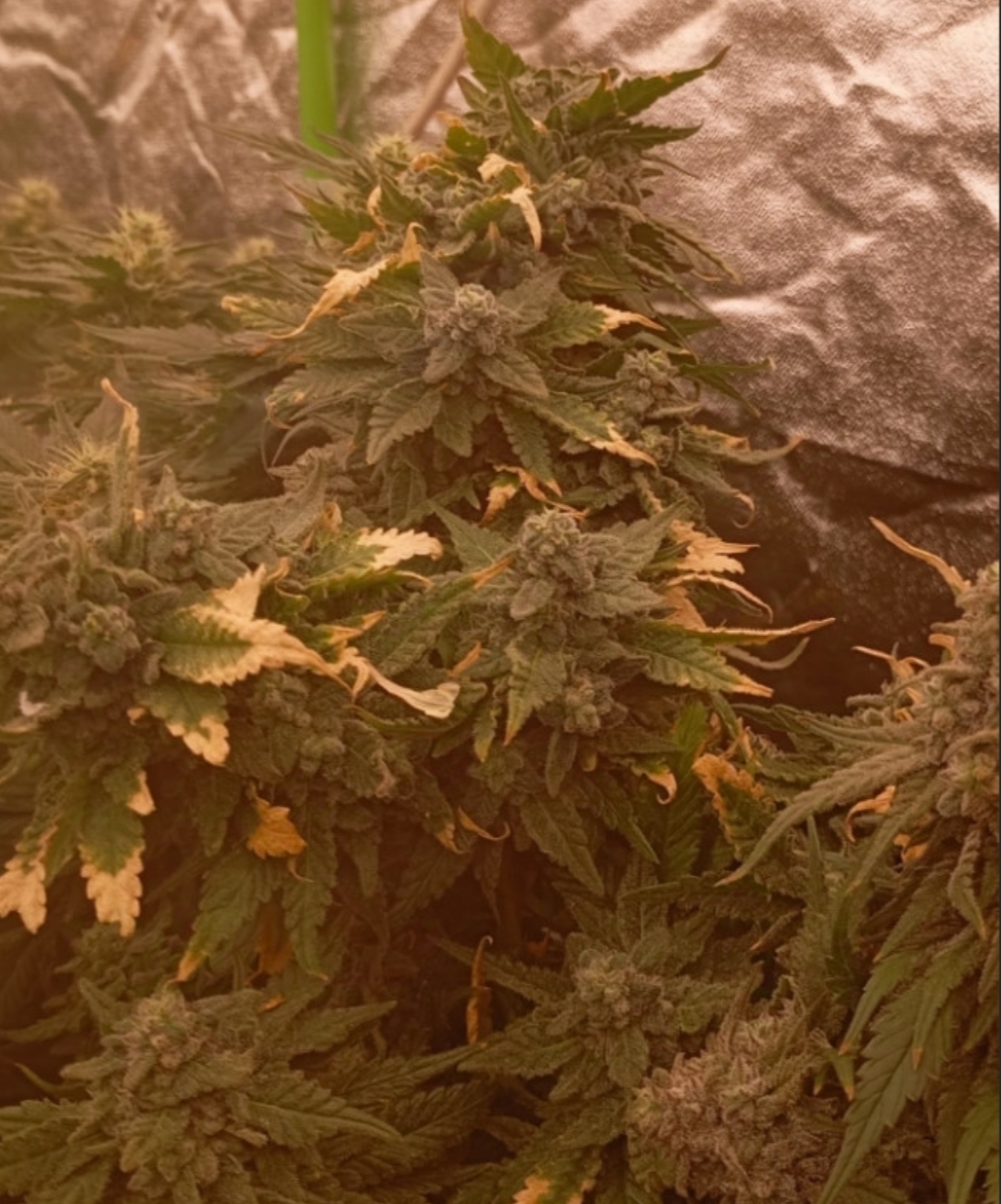 Впервые поднимал фотопериолные сорта, решил, попробовать permament. Так получилось что вега затянулась на 90 дней цветение идёт 44 день, и девочки в прямом смысле получились моделями по 1.75 -1.85 см. Я прифигел от количества второстепенных стеблей в бралатке ( девочек было 7штук) , но засал обрезать сильно, это и была моя ошибка. Из за количества заявязий количества дней цвета растет, приходится ставить боковой свет. У одного куста я прямо хорошенечко удалил все записи и у него шишки развились быстрее всего, на фото последний гигант с желтыми листьями. Я очень доволен результатом, на цвете запах арбузного дирола ярко выражено. Шишки очень плотные, и достх пор набухают там что ветки начинают ломаться. Я ставлю 10 из 10