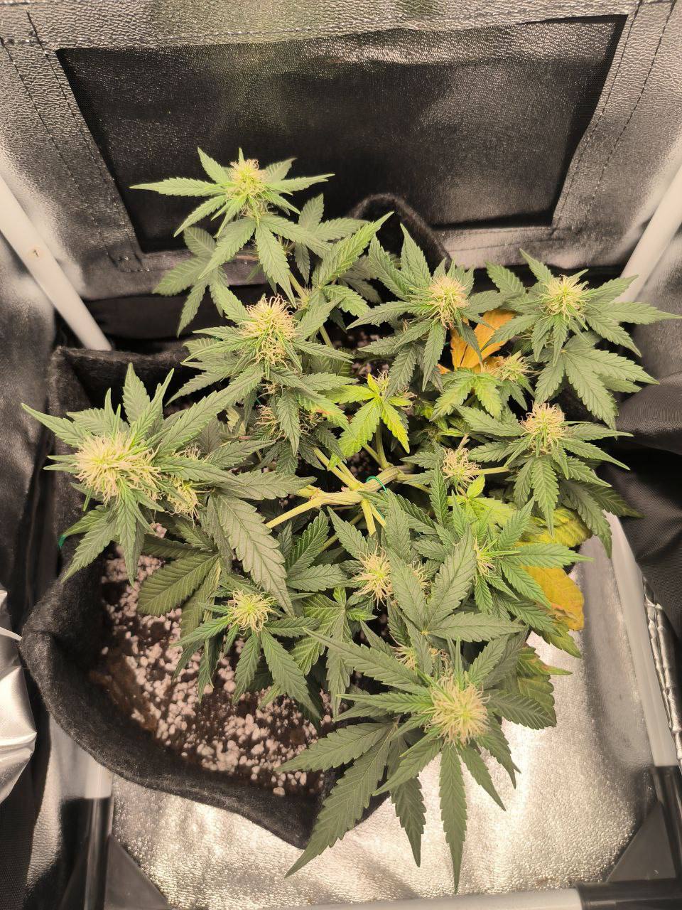 Все классно, все в кристаллах, за 70 дней полностью созрел. Шишки пахнут сладко!!! Сейчас лечатся. Я уверен курево будет убойное и ароматное. Спасибо гроверзу за сервис.